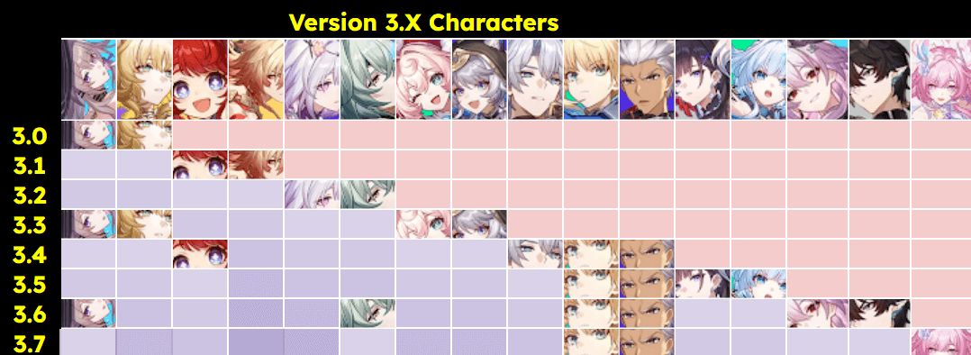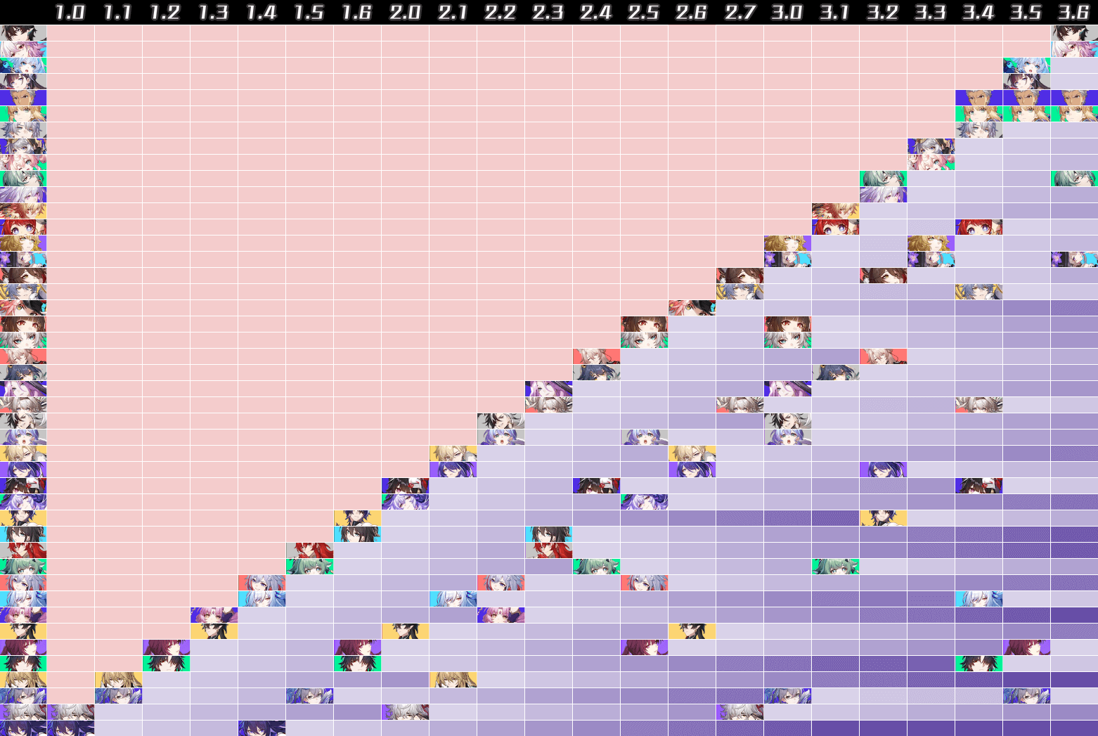 Click on the image above to view all the debut and reruns for all characters up until Version 3.6.